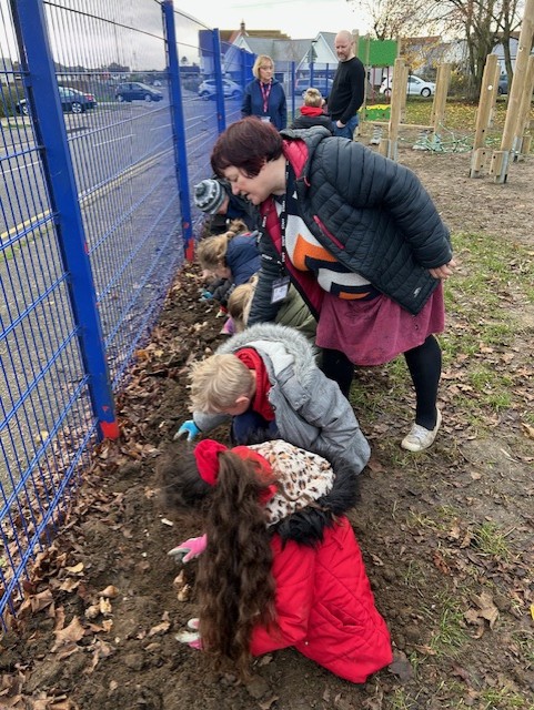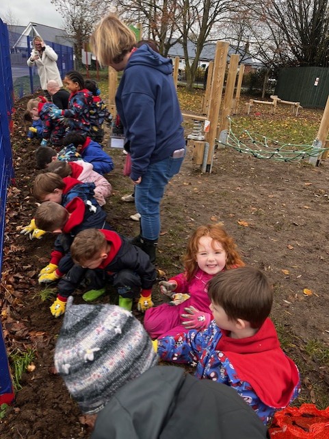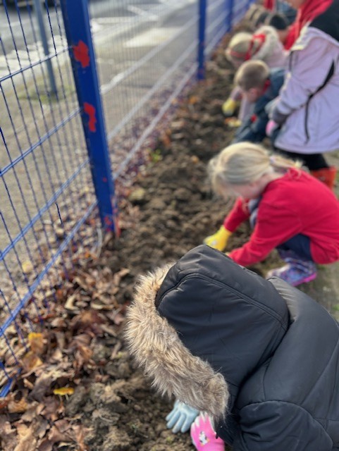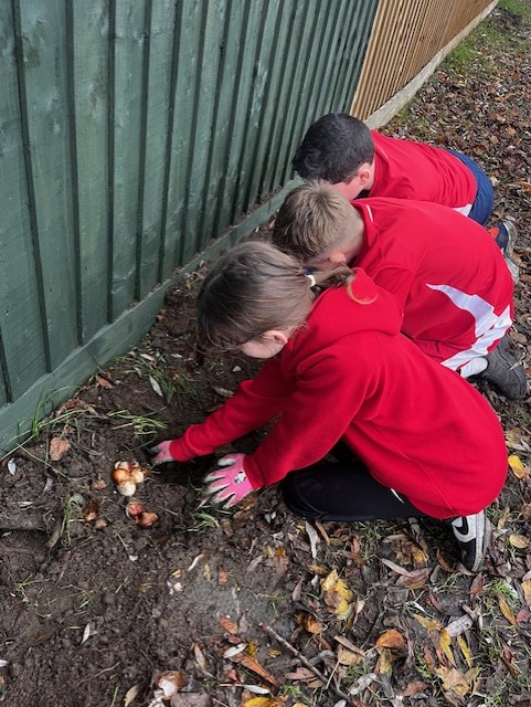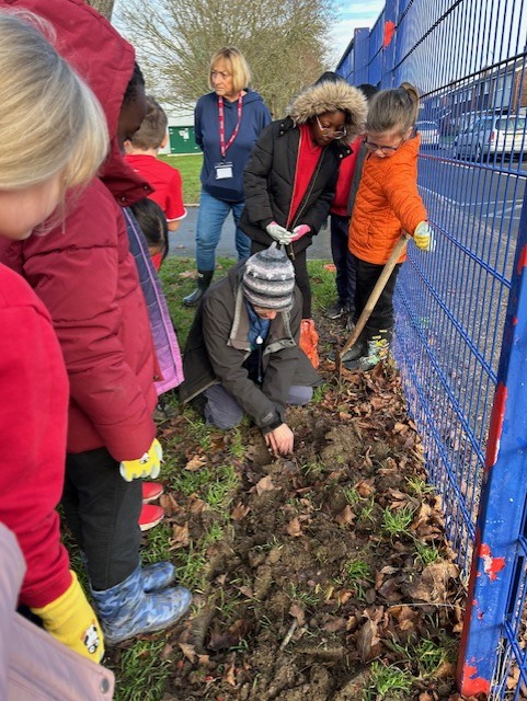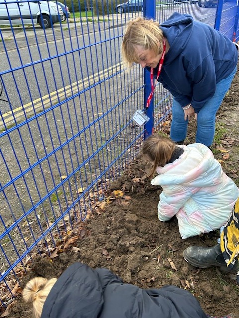 As part of our 'Watch us Grow' project, today every child in the school helped plant nearly 1,000 bulbs on the school grounds. They were helped by some amazing volunteers including Quincy's mum and dad, Archer Wicken's mum, Henry Smethurst's Nanny, Miss Dale and Chris Osbourne from the Local Council. The children had a fantastic time and are very excited to watch the bulbs bloom in the Spring. Well done to everyone and THANKYOU from all at Baynards.